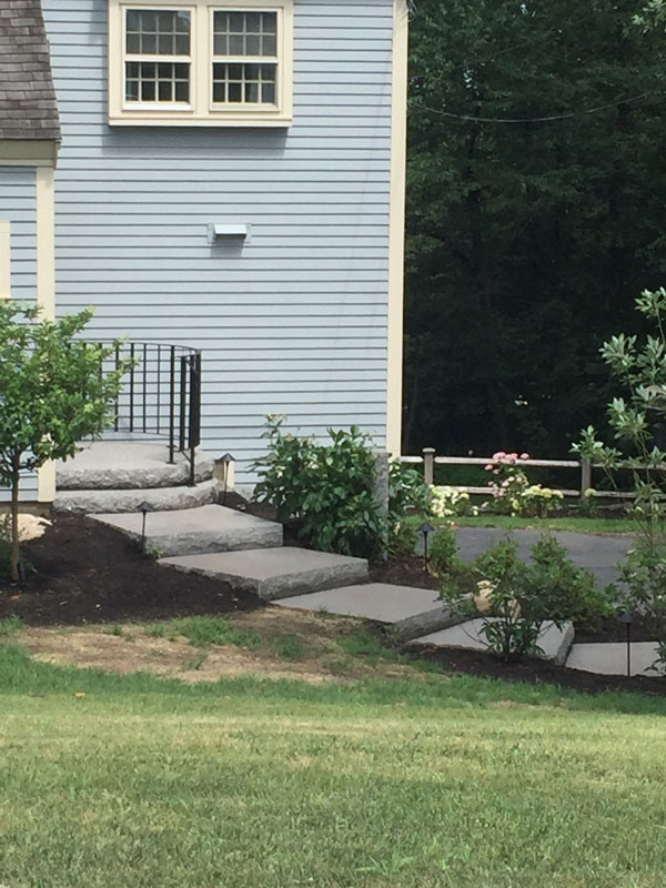 Choose between a variety of granite colors, bluestone, brownstone, stone veneer, or brick to create your own inviting entrance. Sudbury Stone and Hardscape specializes in the construction of stone slab staircases and entrances using solid custom cut stone. We can repair existing damage to your masonry steps, reface or remodel your existing steps, and repair and lead flash rotted and damaged sills .
