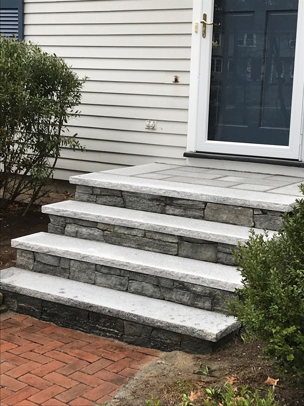 Masonry steps are the preferred choice for a beautiful and long-lasting home entrance. Sudbury Stone and Hardscape designs and installs custom stone steps that withstand the brutal winter weather for 5 times as long as wood or composite staircases.